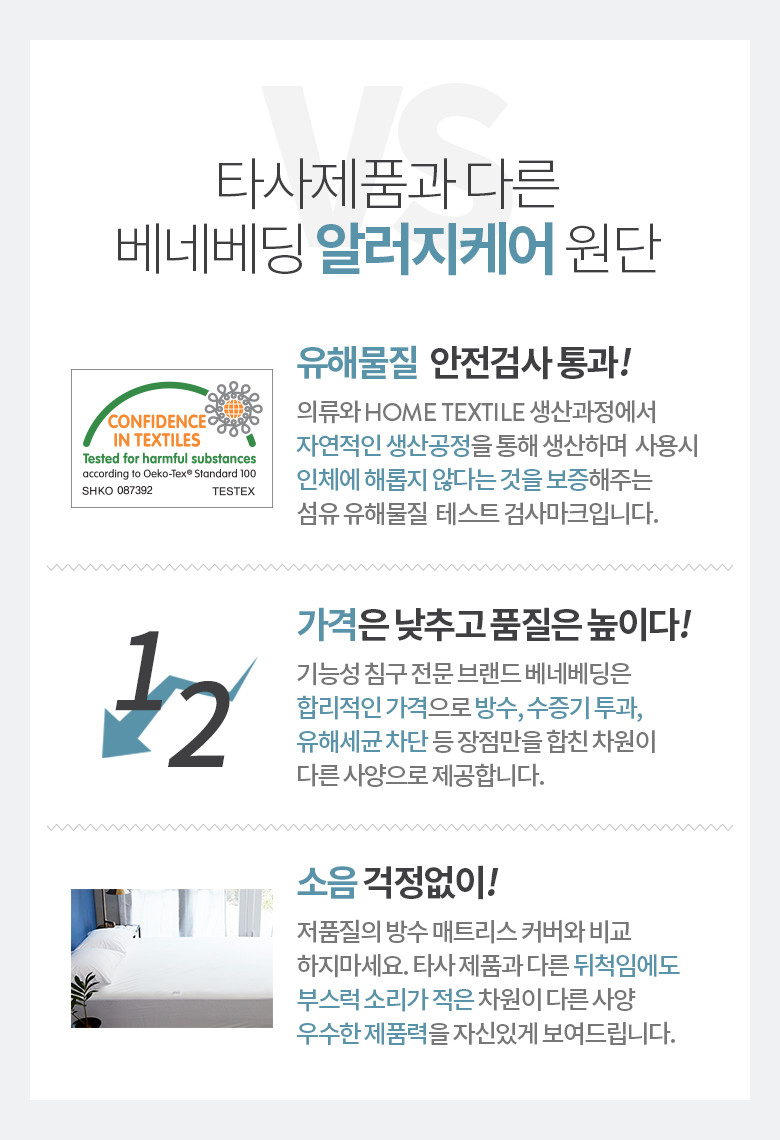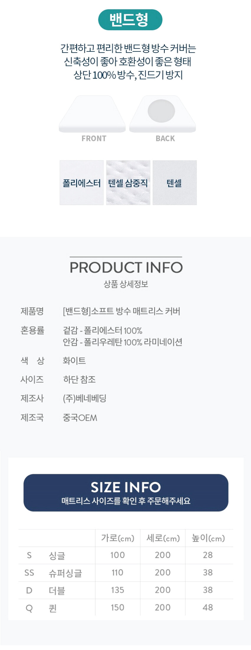 [베네베딩] 매트리스 방수커버 S/SS/D/Q