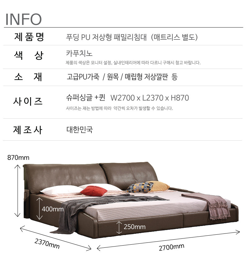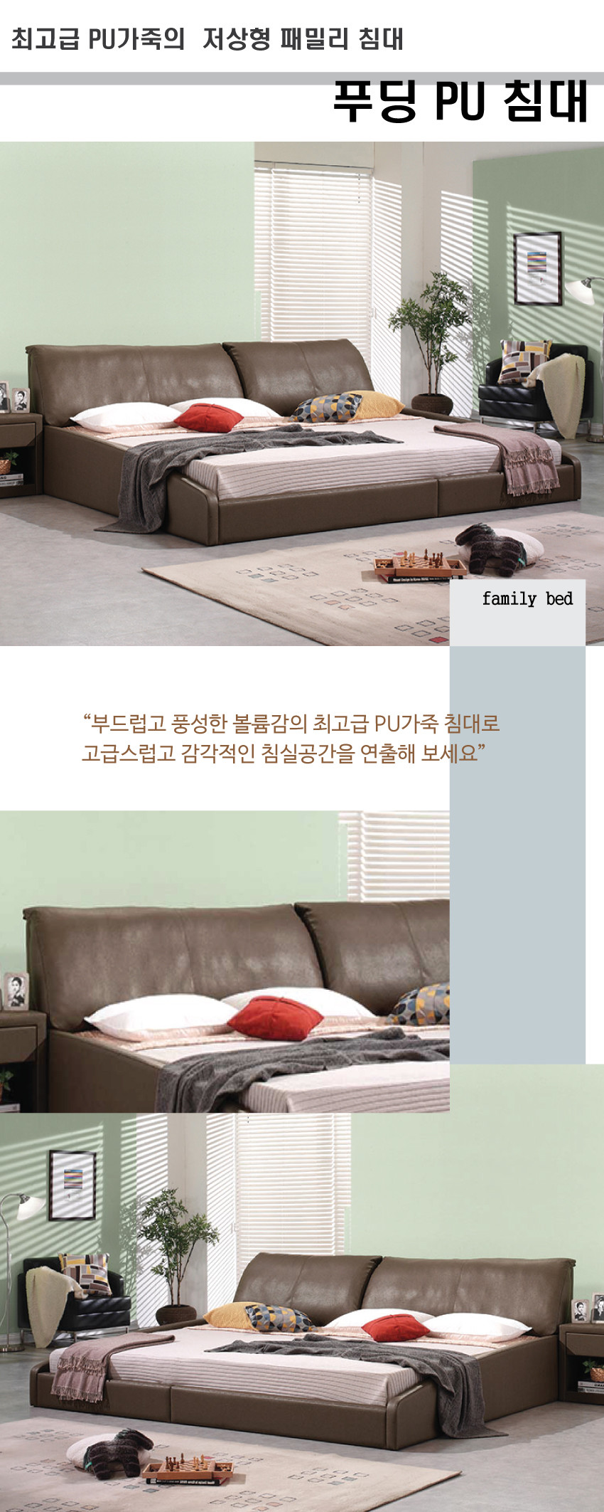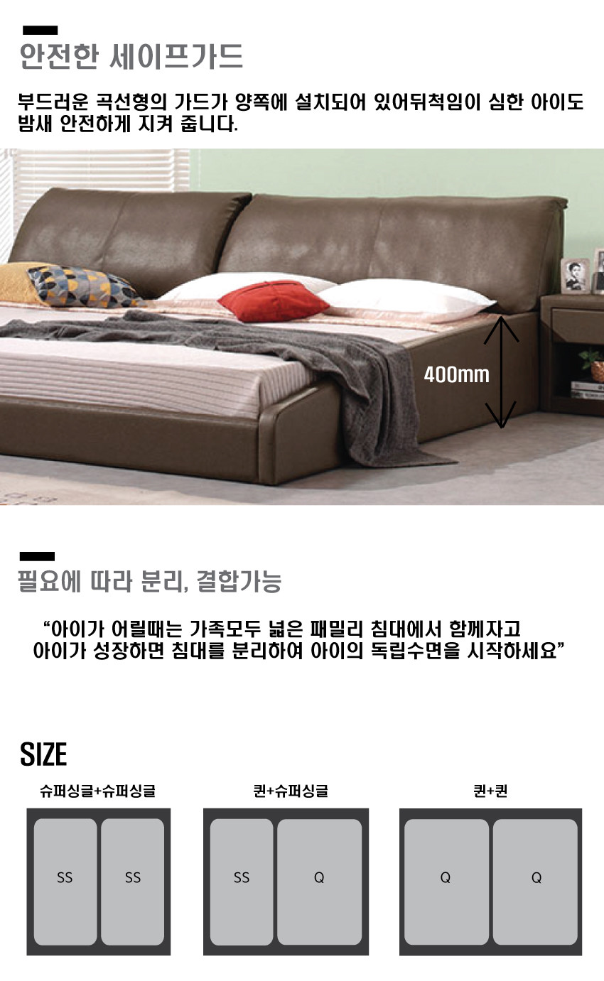 푸딩 PU저상형 패밀리침대 (SS+Q)