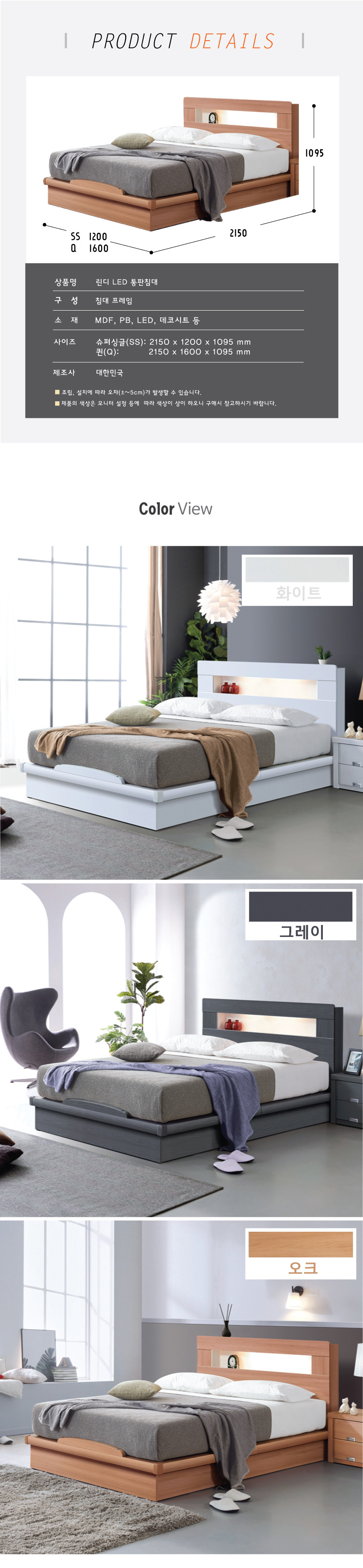 린디LED 통판침대(SS/Q)