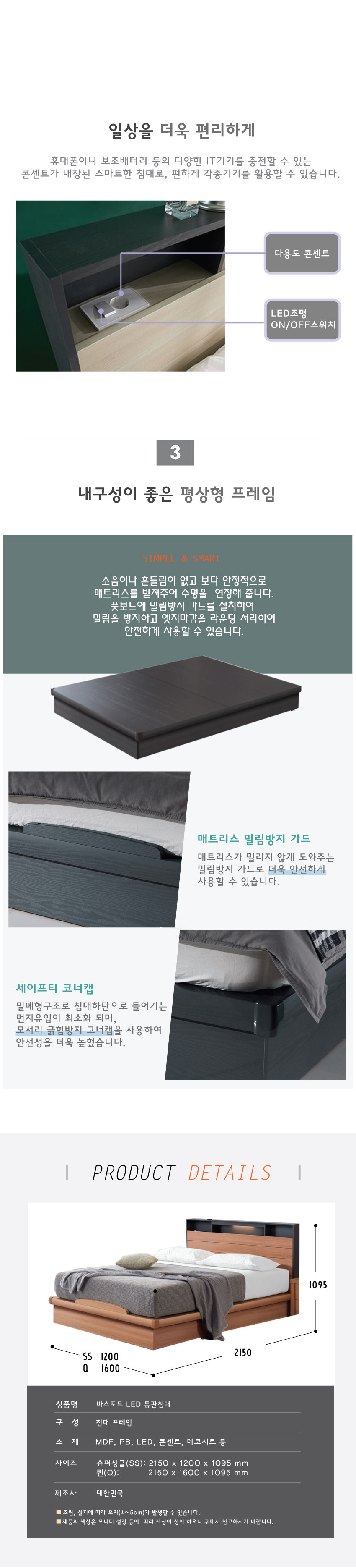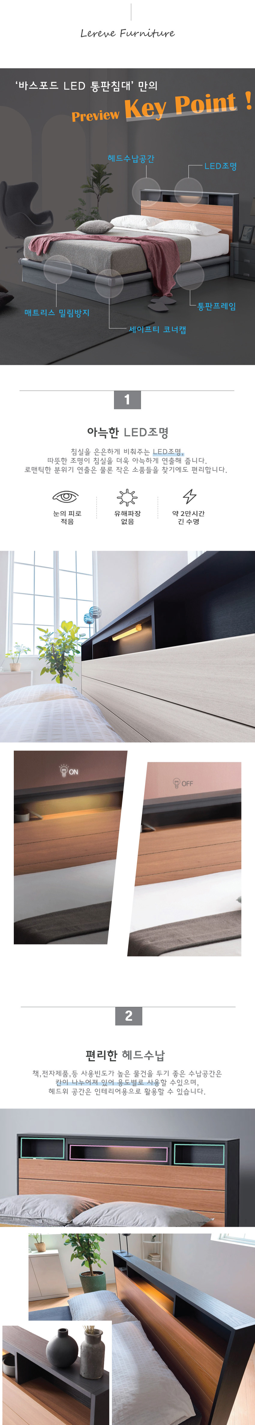 바스포드 LED 통판침대(SS/Q)