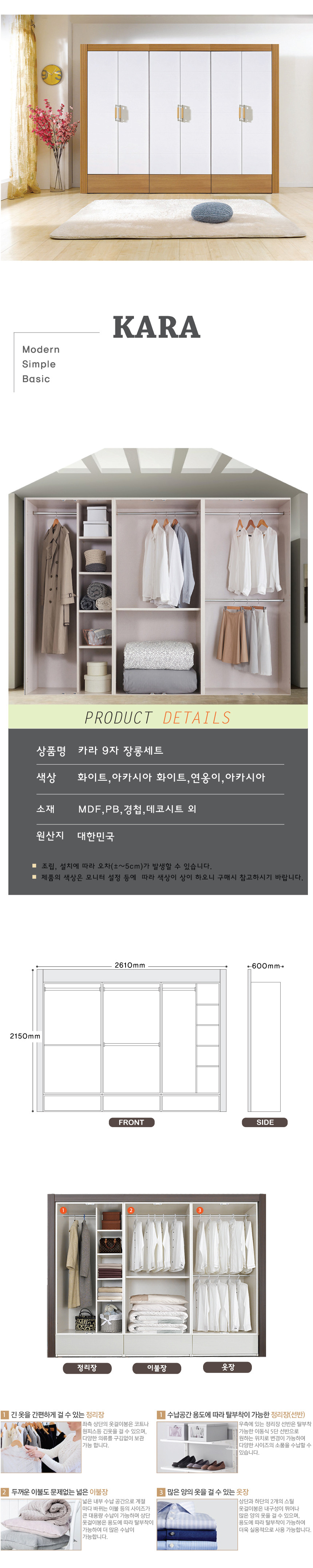 카라 9자 장롱세트(4color),옷장,이불장/ 부산무료배송