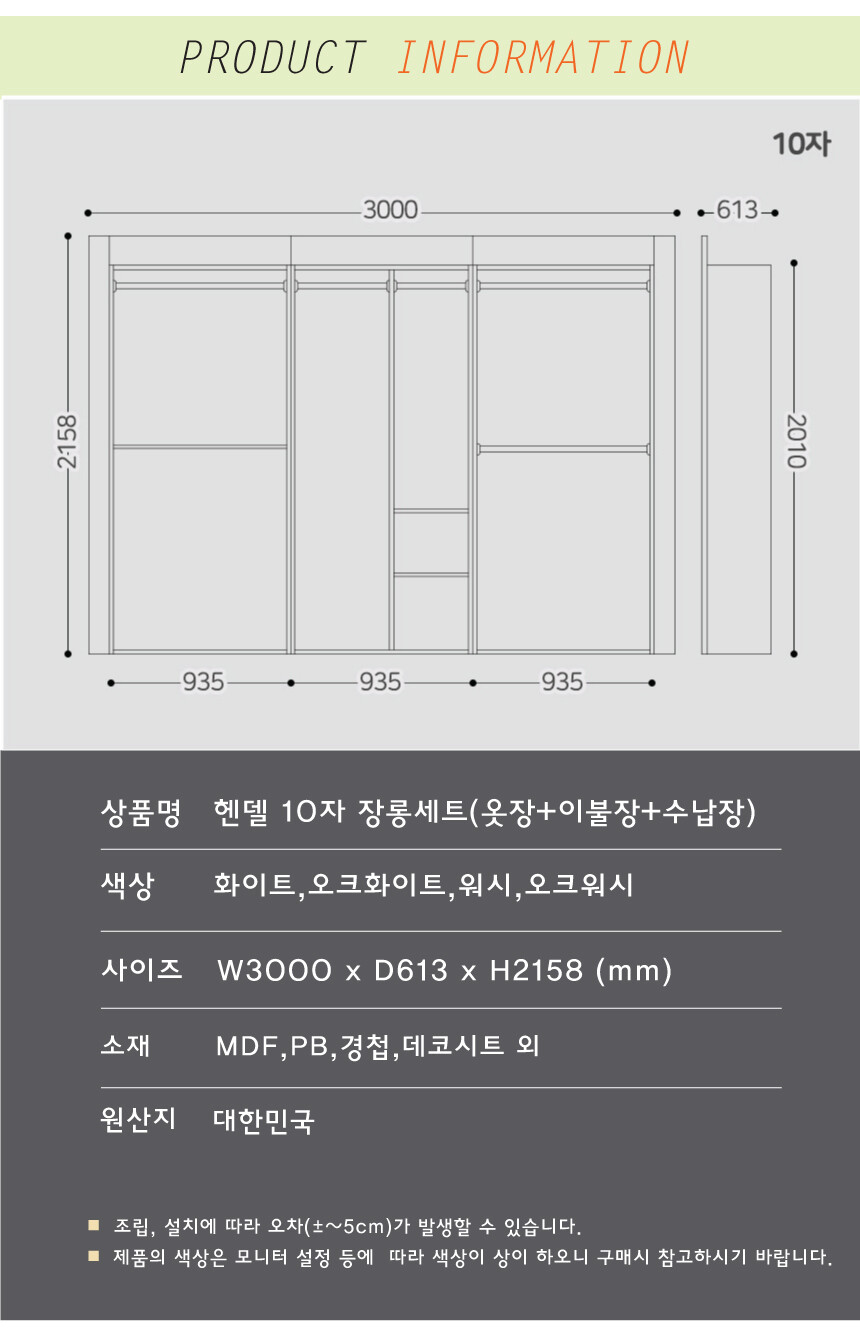헨델 10자 장롱,장농,옷장,이불장,수납장/ 부산무료배송