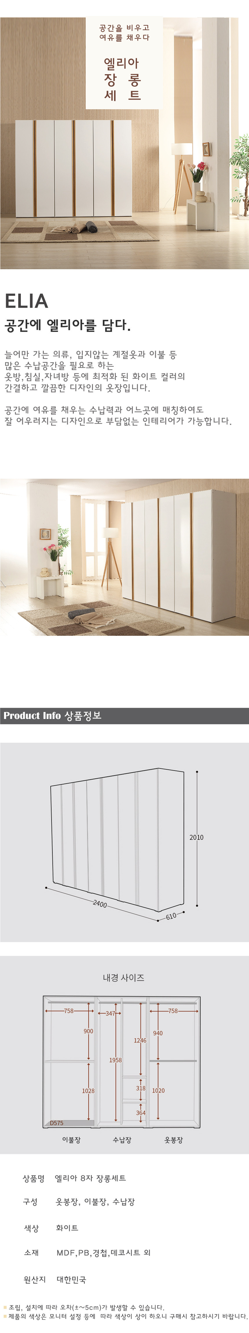 엘리아 고광택 8자 장롱세트,장농,옷장,이불장,수납장/ 부산무료배송