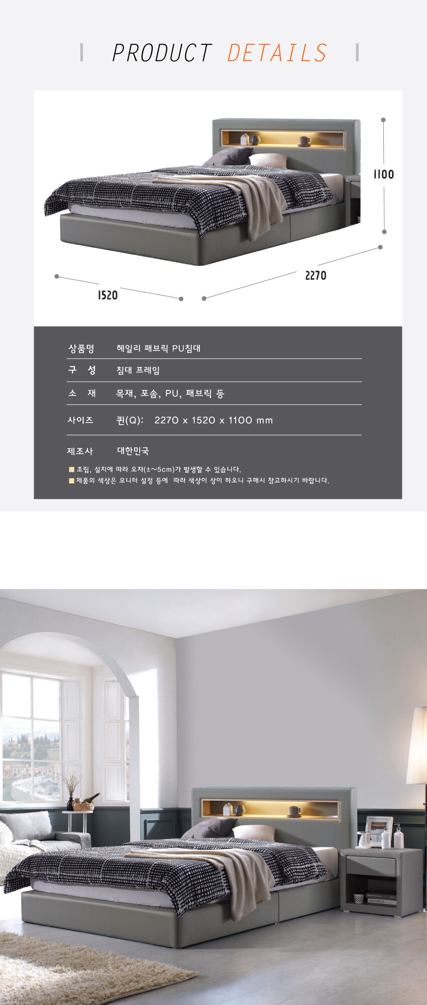 pu & fabric 침대
